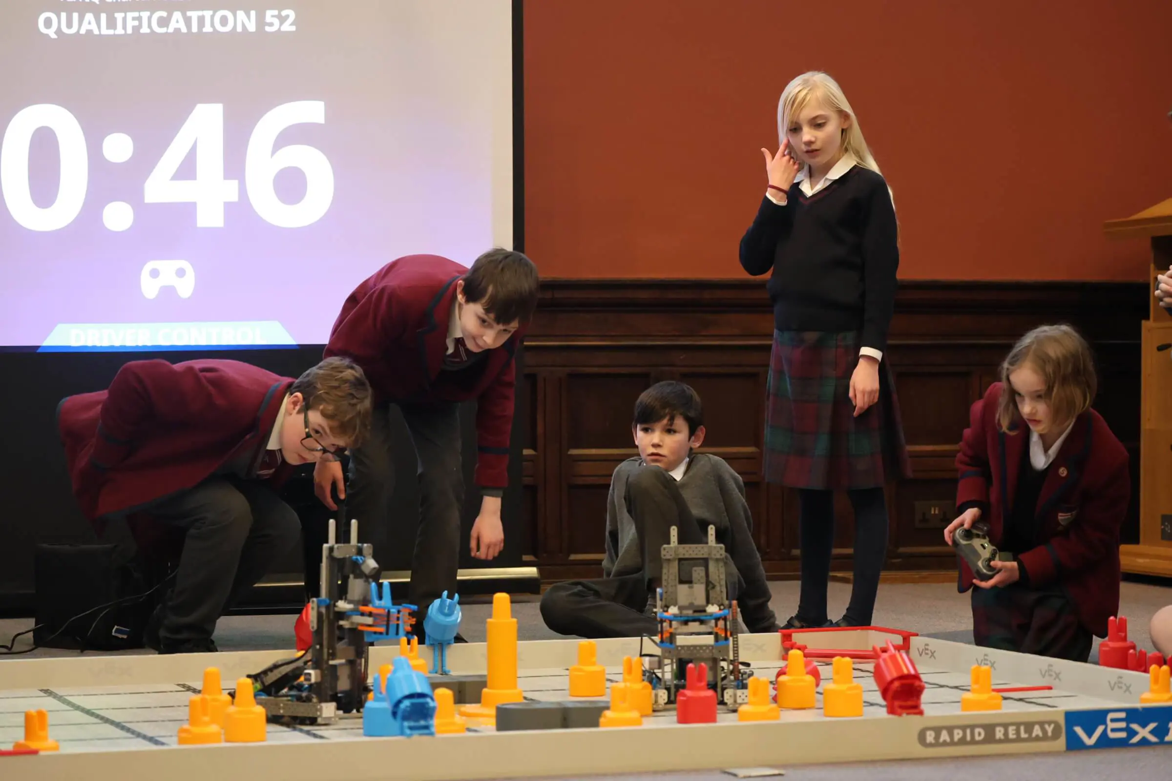 For the first time, Charterhouse was delighted to host a national robotics competition, welcoming 13 teams from schools across the UK to take part in the VEX Robotics game Push Back.