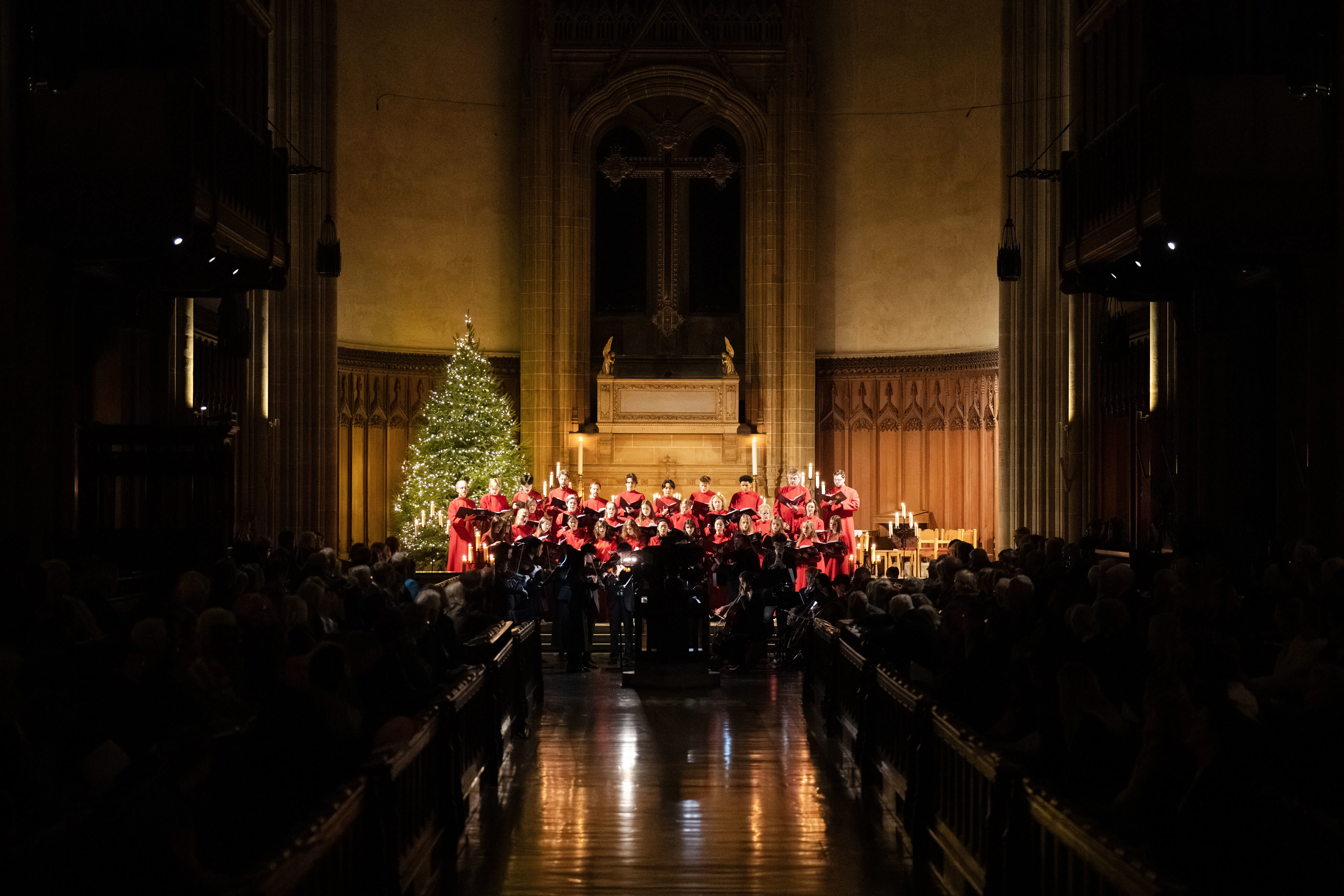 As the iconic tree goes up in the Memorial Chapel, with its hundreds of glowing white lights luminescing in the corner of the Sanctuary, you know that Christmas at Charterhouse has arrived. And what does that mean? Yes, of course, the annual beautiful evenings of Candlelit Carols, sung again this year by the excellent Schola Cantorum under the direction of the Director of Music, Mr David McKee.