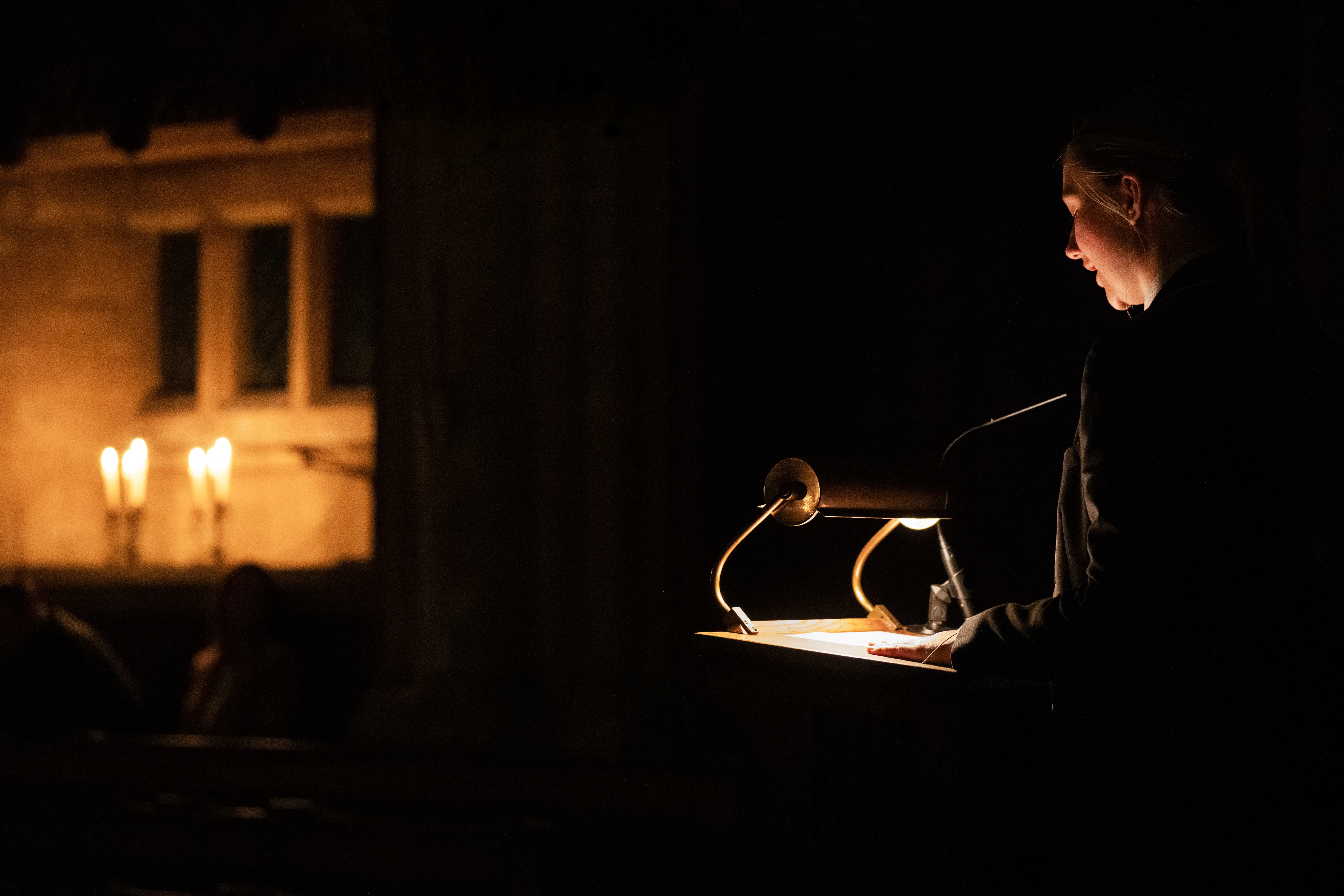 In recent renditions of these special evenings, there has been a move to involve more Charterhouse musicians and this year saw the assembled, excellent Chamber Orchestra joining Schola. At the top of the programme, interspersed as ever with selected appropriate readings, was JS Bach’s famous Cantata No. 140, ‘Wachet auf, ruft uns die Stimme’, a performance of the complete Cantata with excellent solos from members of Schola and instrumental obbligato solos to accompany. Coco and Evelina, First Year Specialists (Year 12), (soprano) duetted with Michelin, Second Year Specialist (Fifth) and Charlie, Fifth (Year 11) (bass), whilst instrumental offerings came from Hayley, First Year Specialist (Year 12) (violin) and Mrs Turner (oboe). Dramatic and informative recitatives were provided by Mr Brooks amidst the solo movements.